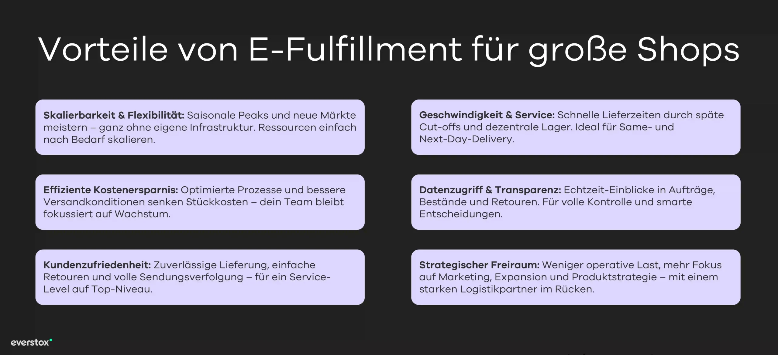 Für Entscheider in großen Online-Unternehmen lautet die Empfehlung: mach E-Fulfillment zur Chefsache. Analysiere ehrlich, ob deine aktuelle Fulfillment-Lösung mit dem Wachstum und den Anforderungen Schritt hält. Wenn nein, ziehe spezialisierte Dienstleister in Betracht oder investiere in eigene Optimierungsmaßnahmen (Automation, bessere IT-Systeme, zusätzliche Lagerstandorte). Bei der Auswahl externer Fulfillment-Partner, wie z.B. everstox, solltest du klar definierte Anforderungen und KPIs anlegen – und partnerschaftlich zusammenarbeiten, um kontinuierlich Verbesserungen zu erreichen.
