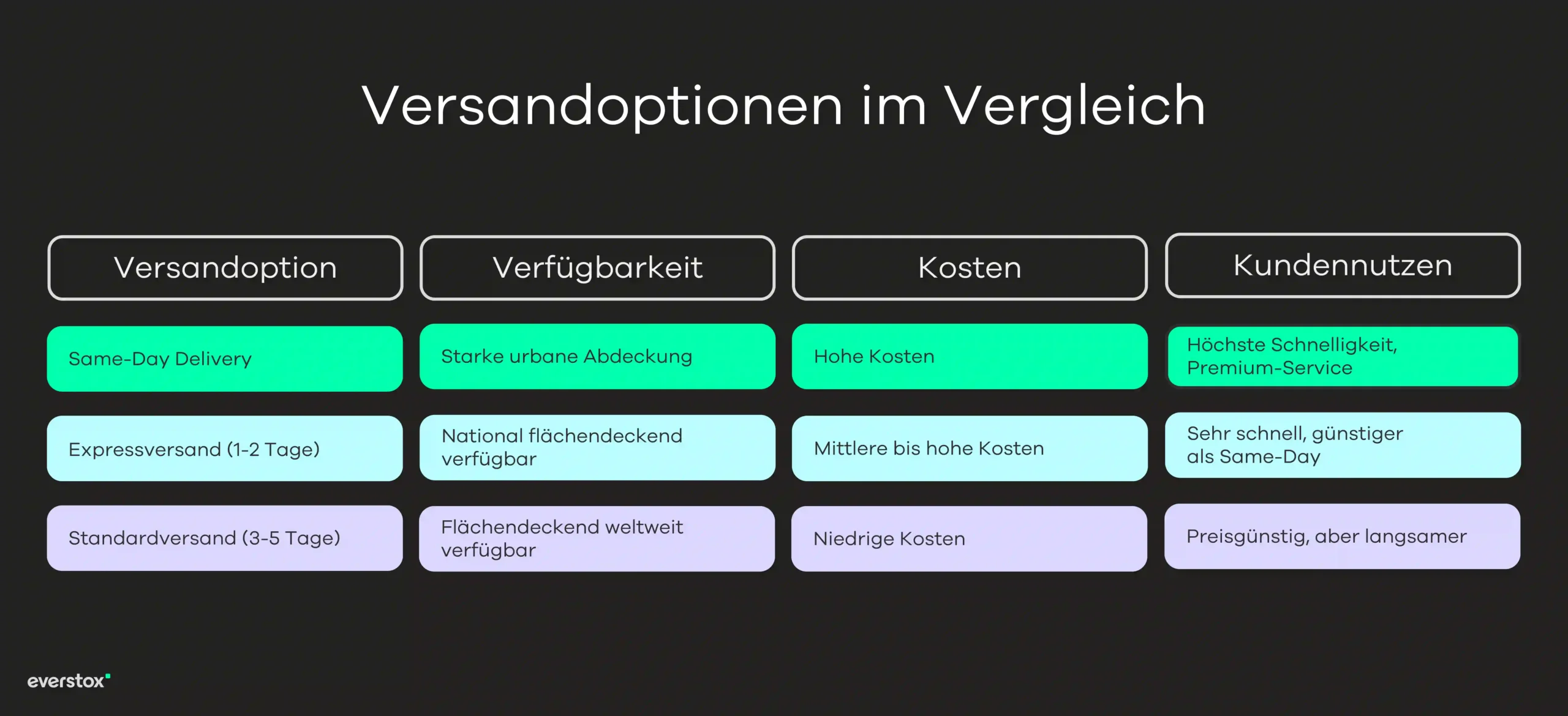 Versandoptionen im Vergleich: Same-Day Delivery, Expressversand und Standardversand