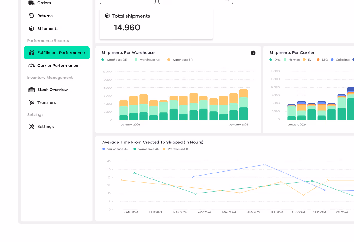 A flexible integration layer allows brands to add new warehouse locations, carriers, or markets without rebuilding their technical setup. By keeping one consistent data architecture, teams can scale internationally while maintaining the same processes, reporting standards, and operational visibility across regions.