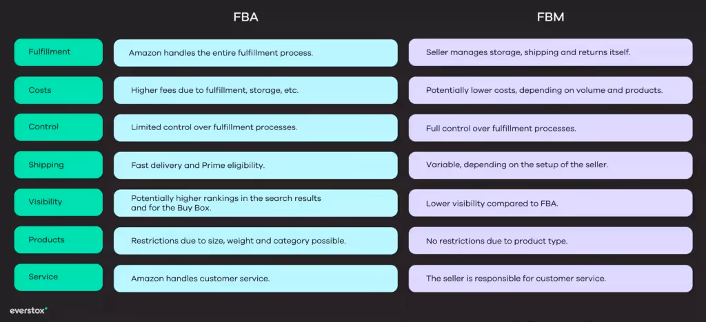 A combination of both models can also be a sensible strategy. Many retailers use FBA for their bestsellers and rely on FBM for special products or markets. Those looking for an even more individual solution can combine the best of both worlds with external fulfillment providers such as everstox and optimally implement both multi-channel fulfillment and individual shipping strategies.